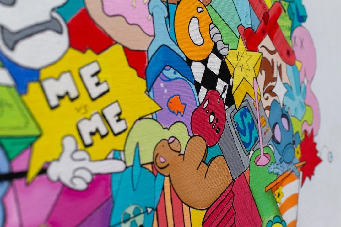 Simultaneously, the extensive details in my work lure the viewer into discovering them, even as I maintain this cartoon look. This combination of complexity against the backdrop of a childlike cartoon shocks the viewer. Ultimately, the interpretable interactions between the cartoon-like figures convey a message to the reader. That message is something I believe the viewer needs to decipher.