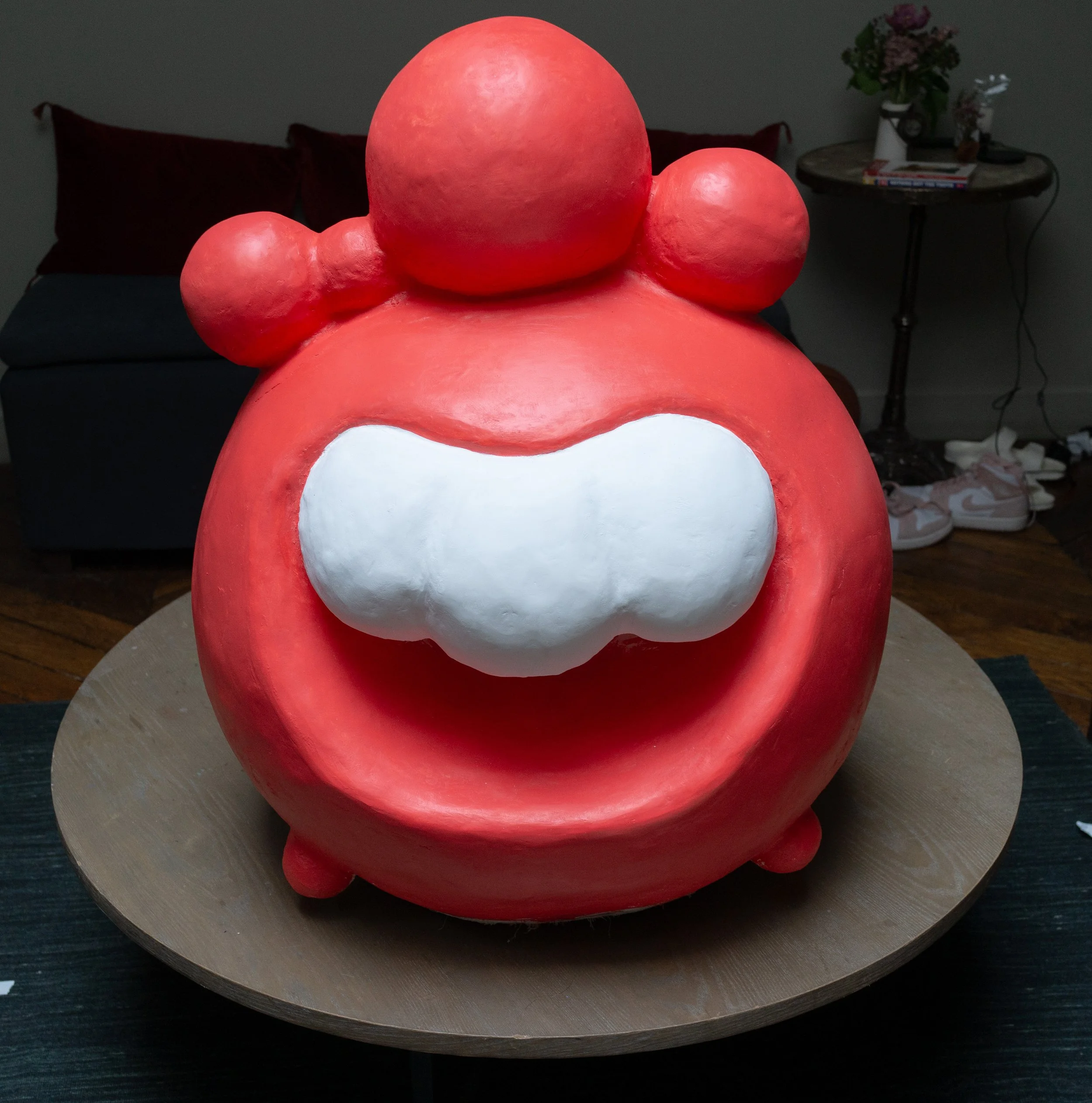 Laughter is essential to being a human, it is a universal language that transcends borders and cultures. However, in today's society, we often neglect its importance. “Laugh it out” emphasizes laughter value. By depicting one of my cartoon characters laughing at a large scale, I am able to shock the viewer. This is because cartoon characters are rarely seen in a tangible form. When making this piece, I was inspired by the smooth textures and shapes of contemporary artist Kaws’s figurines.